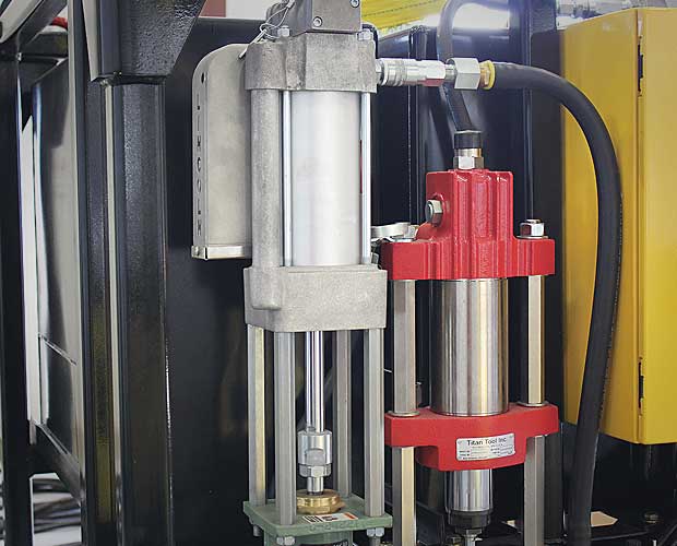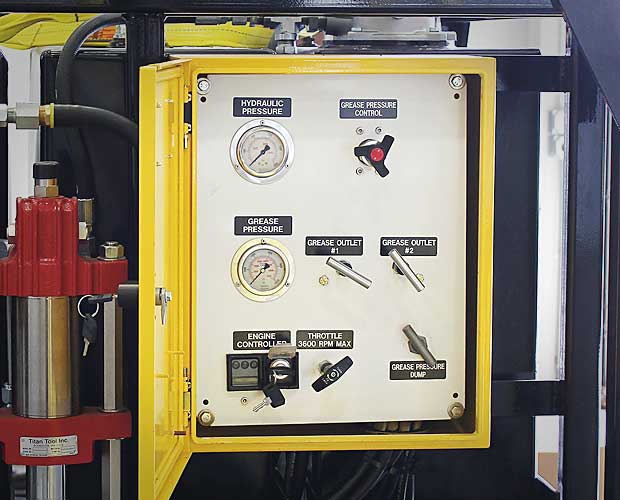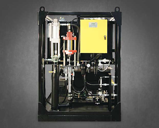 The FHE 5k grease injection system is built in a compact, virtually indestructible steel frame with many standards options available. This unit is outfitted with a reliable hydraulic FHE intensifier primary grease pump and a secondary Lincoln pump-master III. This system is simple and easy to operate with a clearly labeled control panel and quick connect bulkhead. This machine is built tough and will work as hard as you do.